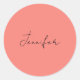 Adesivo Redondo Caligrafia Elegante Coral Cor-de-Rosa Simples Nome