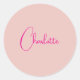 Adesivo Redondo Caligrafia Elegante Rosa Dourado Simples Nome