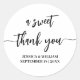 caligrafia a Sweet Obrigado pelo casamento a favor do Classic Round Sticker, personalize-o substituindo o texto do espaço reservado. Para obter mais opções, como alterar a fonte e seu tamanho/cor, expanda a curva/contrato ou o espaçamento entre letras, clique no botão "Personalizar".