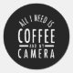 Adesivo Redondo Camera & Coffee - Funny Photography Quote Phot