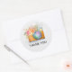 Adesivo Redondo Câmera Laranja Boho e Buquê Floral Aquarela
