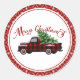 Adesivo Redondo Caminhão de Xadrez Vermelha e Negra Feliz Natal