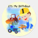 T-shirts, primeiros aniversarios de construção, canecas, cartões, autocolantes, sacos de tartaruga e outros primeiros aniversarios de construção com vários veículos de construção bonitos e um pequeno trabalhador de construção, num chapéu de duro amarelo com o número 1!
