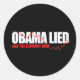 Adesivo Redondo Camiseta Anti-Obama - Obama mentiu e a economia