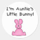 Saco, botão, T-shirts, bib, e vestuário com um coelho de marshmallow cor-de-rosa e um texto em estilo infantil da tia que diz "Sou o coelhinho da tia!".