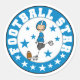 Crianças e adultos que amam jogar futebol atualmente ou jogaram anos atrás amarão nossas t-shirts, capuzes, ímãs, mousépias, sacos de tote, adesivos, postagens e outros jogos de futebol com um jogador de futebol de figuras de palito num capacete azul e um uniforme prestes a chutar um futebol.