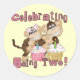 Adesivo Redondo Camisetas e presentes de macacos de festa rosa