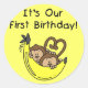 Adesivo Redondo Camisetas e presentes de macacos primeiro aniversa