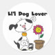 O amante do cachorro adorará esta camiseta do cão Dalmation, que inclui um cachorrinho Dalmation, uma bonito flor rosa e amarela em um pote, e um texto que diz "Li'l Dog Lover"!
