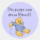Um filhote adorável põe uma camisa azul e o texto diz "Esse filhote pode se vestir!". É um design excelente para crianças aprendendo a se vestir!