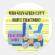 Quem disse que as garotas não podem dirigir tratores? T-shirts, canecas, cartões, autocolantes, cartazes, cartazes, cartazes, botões, ímãs e outros artigos do trator.
