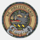 Crachá da crista Campbell rodeado por uma correia e fivela sobre fundo tartano. Texto personalizado.