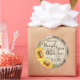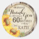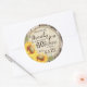 Adesivo Redondo Campo Girassóis Madeira russa Obrigado Rótulo