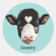 Adesivo Redondo Campo preto e branco Vaca rosto azul claro