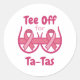 Breast cancer awareness and tournament stickers for your fundraiser. Funny pun tee off for Ta-Tas golf tournament stickers in pink with pink cancer awareness ribbon.