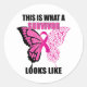 Adesivo Redondo Cancer de Sobrevivência da Mama da Borboleta Rosa