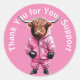 Cancer rosa de mama Obrigado Cola Clássica Redonda Veja este design de reconhecimento de cancer impressão de vaca! 🐮 💗 eu criei minha própria fita rosa personalizada e estou tão animado com isso. O padrão moderno das vacas adiciona uma reviravolta divertida ao símbolo clássico de consciência do cancer da mama. Como sobrevivente de câncer, sei como é importante sensibilizar e apoiar a causa. Esta design única é a maneira perfeita de fazer isso de uma forma na moda, personalizada. Clique no botão "Personalizar!" para alterar o tamanho do texto, a cor do texto, o estilo da fonte e muito mais!