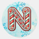 Adicione um toque festivo aos seus presentes de férias e decoração com estes adesivos redondos com a letra "N" num design de cana doce alegre. Perfeito para personalizar presentes, cartas e favoritos para festas! Personalize esta design com um monograma, nome ou foto. © Copyright 2024 P.D., Padrões e pinturas de férias e gráficos. Todos os direitos reservados.
