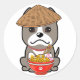 Adesivo Redondo Cão-cinza engraçado está comendo macarrão