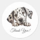 Envie um obrigado sincero com este adesivo icônico do Dalmatic Obrigado. Apresentando o belo casaco preto-e-branco desta raça, é um presente excelente para qualquer amante de cães.