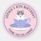 O que é melhor que uma festa de chá para crianças? Uma festa de filhote de chá para crianças! Estes obrigados de aniversário que vocês colam ilustram um filhote Husky Siberiano com olhos azuis numa xícara de chá. Este conjunto leve de xícara de chá roxo tem um padrão de bolinhas branca, e o fundo é uma rosa claro. Personalize estes Aniversários de criança Agradeça aos adesivos a sua própria mensagem e o nome da criança. A mensagem padrão é "8º aniversário da Sophia" e "Obrigado por vir" e está em uma fonte cinza.