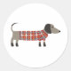 Enchido bonito ou cão-salsicha em tricô. Perfeito para amantes de cachorros e ambulantes de cães. Arte original de Nic Squirrell.