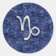 Um símbolo prateado como Capricorn zodiac em um fundo impressão de design de textura azul estilo marinho. Um design moderno urbano para uma ideia personalizada de presente de aniversário de excelente. Use o link "Perguntar a este Designer" para entrar em contato conosco com suas solicitações especiais de design ou para obter assistência com suas necessidades de personalização.