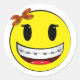 A cara de menina icônica, atualizada com aparelho ortodôntico.