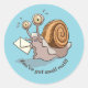 Um cartoon de caracol bonitinho em autocolantes. Use "Personalizar este modelo" para ajustar o texto "Você tem correio de caracol!" e criar um cartão exclusivo e personalizado. Um simples design com um caracol castanho engraçado com grandes olhos em pedacinhos. O caracol ansioso está segurando um envelope e suando com o esforço de apressar, estilo caracol.