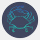 Aquarela com dois design de caranguejo azul tonado sobre fundo azul escuro. Este belo, mas rústico design de água faz um maravilhoso adesivo.