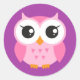 Adesivo Redondo Caranguejo-coruja-rosa-fofinha em fundo roxo