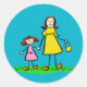 Mãe e filha dão as mãos. O vestido da mãe diz "mamãe" e o vestido da menina diz "eu". O pai e a criança têm cabelo vermelho e pele clara. Esta imagem da família de pais e filhos também vem em várias opções étnicas da família, incluindo um desenho de linha simples. Personalize os decalques do adesivo da família com nomes familiares ou uma mensagem pessoal para uma mãe ou mamãe especiais e presentes decalais da filha! Você pode fazer adesivos familiares personalizados para um presente especial de Dia de as mães, novas Mamães e/ou novo bebê, Reunião Familiar ou outros presentes personalizados de arte familiar!