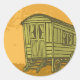 Um desenho a lápis digitalmente editado e colorido de um vagão de caravana cigano