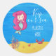 Adesivo Redondo Caricatura sereia com caranguejo mantém o plástico