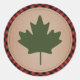 Um adesivo com ilustração de uma folha de mapa verde sobre um estoque de cartão inspirou fundo com borda de xadrez vermelha e preta. Procure convites na Paperie de Jill.