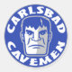 Logótipo circular Carlsbad Cavemen azul, branco e prateado com mascote caveman no centro rodeado por carlsbad Cavemen lettering.