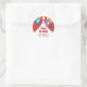 Perfeito para as bolsas de gaiolas, em favores, ou em envelopes de cartões de agradecimentos, este divertido design de carnaval apresenta balões de cores brilhantes e confete contra uma tenda vermelha de circo.