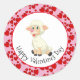 Este adorável carneiro quer desejar-lhe um Feliz Dia dos Namorados. Num fundo cor-de-rosa com corações vermelhos, esta design tem um cordeiro bebê. O texto em pode ser personalizado. Estes autocolantes coordenam-se com o "Cartão de Namorados para Bebês e Corações para Crianças", para crianças. Pode ser utilizado no envelope ou como selo para sacos de presentes.