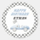Adesivo Redondo Carro Race Azul, Aniversário de Um Rapaz Rápido
