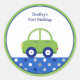 Adesivo Redondo Carro Verde e Azul Personalizado Primeiro Aniversá