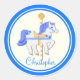 Cavalo carrossel divertido em azul e ouro decorado com estrelas para combinar com nossa coleção de pôneis pintados. Personalizar com um nome ou nota de obrigados.