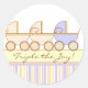 Anuncie as notícias do excelente com este design de adesivo divertido. Duas carruagems para as meninas, uma para o garoto com listras de azul, rosa e amarelo fazem o anúncio divertido no seu chá de fraldas ou envelopes de anúncio.