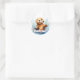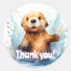 Um adesivo 'Obrigado!' com uma adorável e engraçada lontra do mar do bebê tocando em pedaços de água contra um fundo branco. Sombras brilhantes de azul e marrom. Este animal brincalhão e encantador é capturado numa pose maliciosa, com um grande texto sobre o qual emite uma mensagem clara. Este adesivo é perfeito para selar envelopes ou decorar presentes. O texto pode ser personalizado.