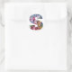S letra alfabética inicial, design de monograma artístico branco-branco-branco-branco-branco. Papais noeis na neve da noite de inverno brincando de harpa na luz da lua com coruja. Pintura acrílica. apresentada por Bulgaria Lumini (c) com