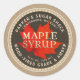 Para uma etiqueta em negrito com um toque de safra, não olhe para além desta etiqueta de xarope de madeira. A folha vermelha chama os olhos, e as fontes são legíveis e sofisticadas. Edite para adicionar seu nome comercial, endereço, volume de xarope de mapeamento e nível com descrição opcional. Borda kraft pontilhada.