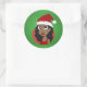 Design com uma ilustração da linda jovem africana americana de cabelo ondulado e chapéu de Papai Noel, design de Natal com fundo verde, por Radka Kavalcova
