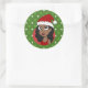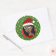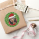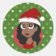 Design com uma ilustração da linda jovem africana americana de cabelo ondulado e chapéu de Papai Noel, design de Natal com fundo verde com estrelas, por Radka Kavalcova