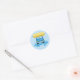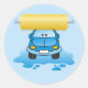 Um carro azul sorridente lavando-se com pincel de lavagem de roupa.