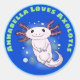 Este axolotl fofo está feliz nadando em bolhas azuis sobre um fundo escuro. Muito divertido!