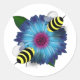 Adesivo Redondo Cartoon Honey Bees Meeting on Blue Flower